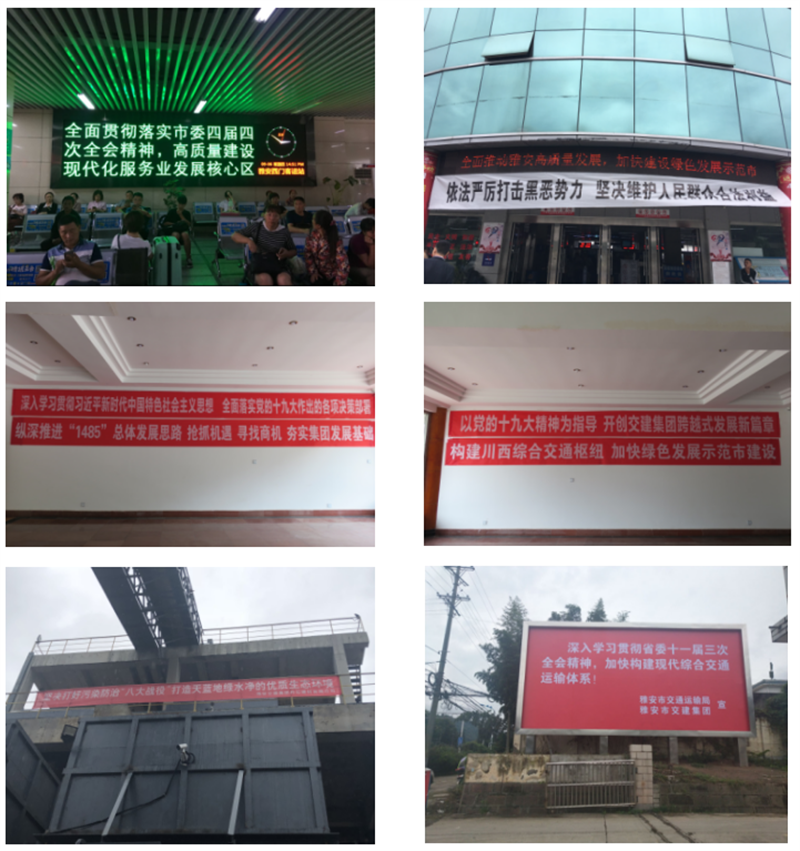 二是充分利用服務平臺優(yōu)勢擴大宣傳。充分發(fā)揮蜀通公司車站、車輛等人流量大的優(yōu)勢,利用出租車LED顯示屏、公交車顯示屏和車載終端、西門車站等各站電子屏、站外橫幅等宣傳載體宣傳市委四屆四次全會,僅蜀通公司宣傳標語就多達43條,滾動播出上萬次。