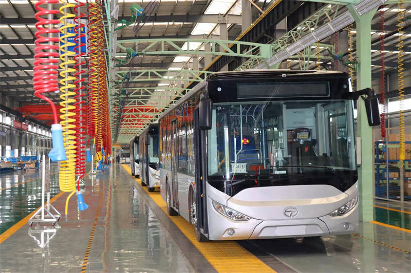 組裝部件、調(diào)試設(shè)備,5月15日上午,位于雅安經(jīng)開區(qū)的四川新筑通工汽車有限公司(下稱:新筑通工)新能源汽車總裝生產(chǎn)線一派繁忙,技術(shù)人員正對已下線的氫燃料公交車進行最后的聯(lián)調(diào)聯(lián)試,該批“雅安造”氫燃料新能源公交車,預(yù)計今年10月將投入雅安首條氫能公交示范線試運行, 綜合續(xù)航里程預(yù)計達到400公里。