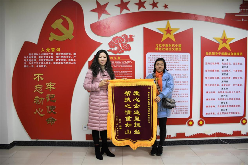 “感謝運通公司一直以來對我和家人的關(guān)懷、照顧,讓我感受到了社會的溫暖,讓我們的生活充滿了希望!”1月18日,家住雨城區(qū)雅州大道的黃菲女士在青江街道石馬社區(qū)工作人員的陪伴下來到運通公司,將一面印有“愛心企業(yè)顯擔當 幫扶之情重如山”字樣的錦旗送到運通公司。這是運通公司2022年收到的第一份特殊“禮物”。