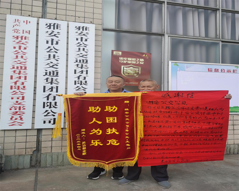 近日,雅安市公共交通集團有限公司5路公交車駕駛員支亳川,在行駛過程中熱心幫助一老人成功尋找到家人,給文明雨城增添了暖心的一幕。4月17日,老人和家人帶著親手寫的感謝信和錦旗,來到公交集團當面感謝公交集團和5路駕駛員支師傅熱心助人的善舉。