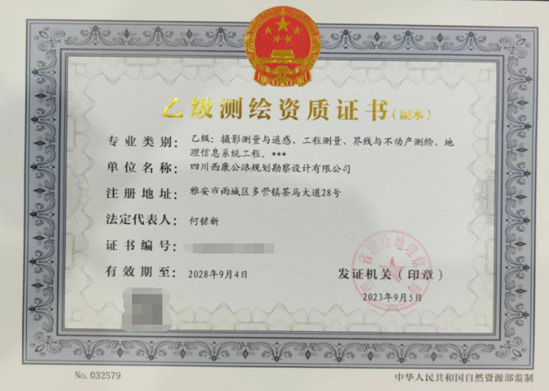 近日,經(jīng)四川省測繪地理信息局批準,雅安交建集團西康勘察設計有限公司取得測繪乙級資質(zhì)證書,標志著公司在經(jīng)營產(chǎn)業(yè)多元化和專業(yè)化發(fā)展上取得重要突破。