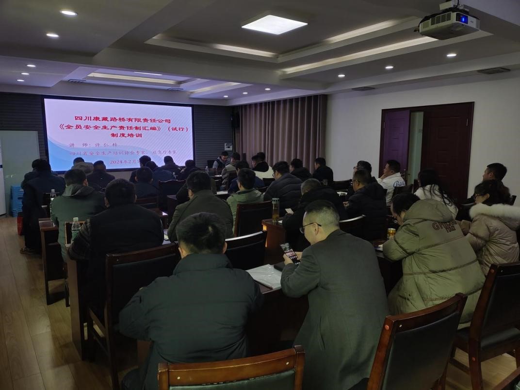 日前,雅安交建集團路橋公司邀請四川省安全生產(chǎn)培訓協(xié)會專家、四川省應急廳專家許仁科在機關(guān)辦公樓三樓會議室對50余名來自公司各部門及各項目管理人員進行《全員安全生產(chǎn)責任制匯編》(試行)制度培訓。