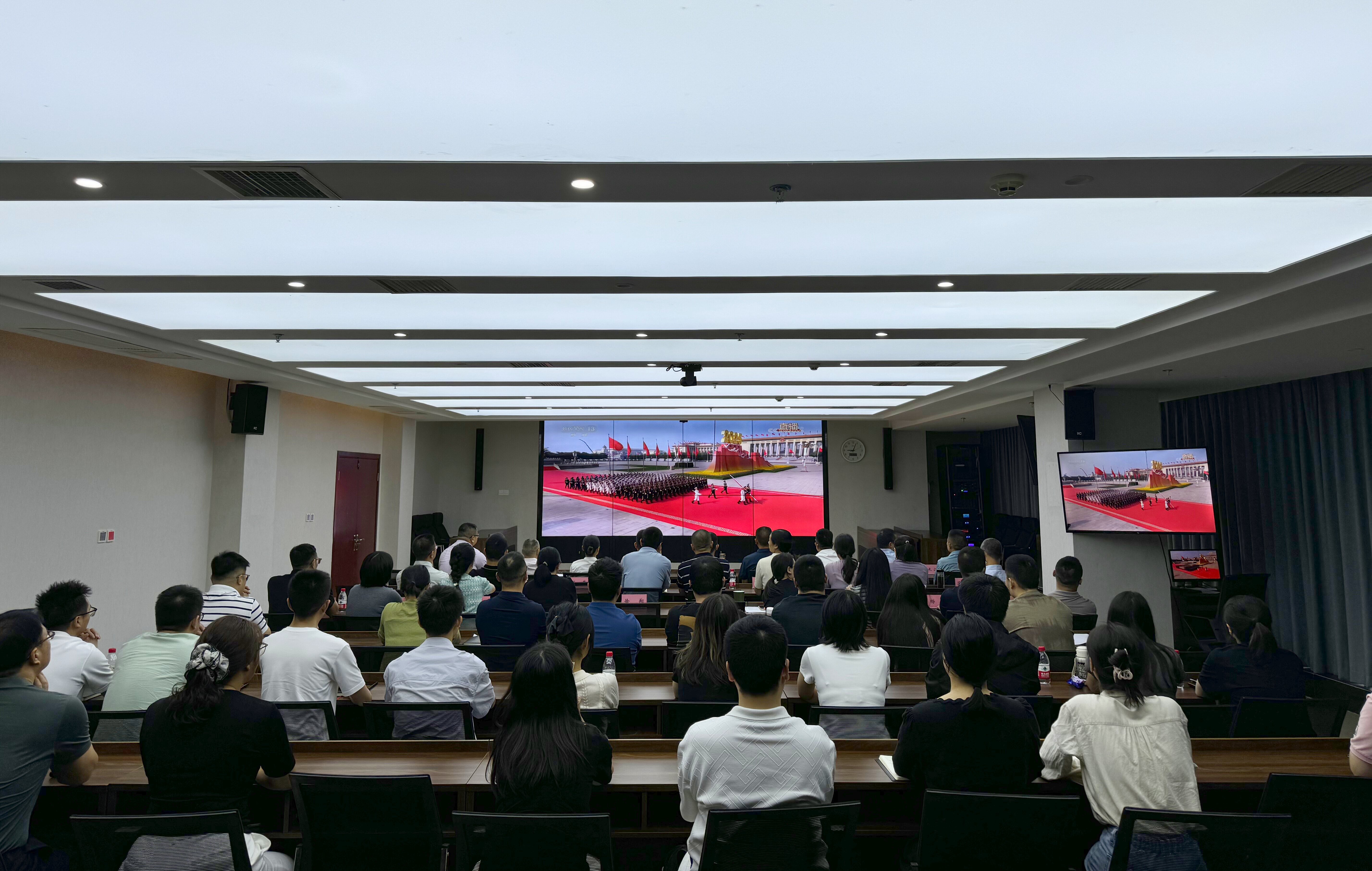 在集團機關(guān)會議室,干部職工神情莊重,通過高清投影實時觀看紀念大會直播,從莊嚴肅穆的紀念儀式到振奮人心的重要講話,每一個環(huán)節(jié)都讓在場人員深受震撼。與此同時,集團下屬子公司分別在項目指揮部、客運場站、物流園區(qū)等場所組織集中觀看,確保一線員工同步參與學(xué)習。在國道318線改建工程項目部現(xiàn)場,建設(shè)者們在工地臨時會議室集中收看,斑駁的工裝與鮮紅的黨旗交相輝映,成為現(xiàn)場最鮮明的印記。