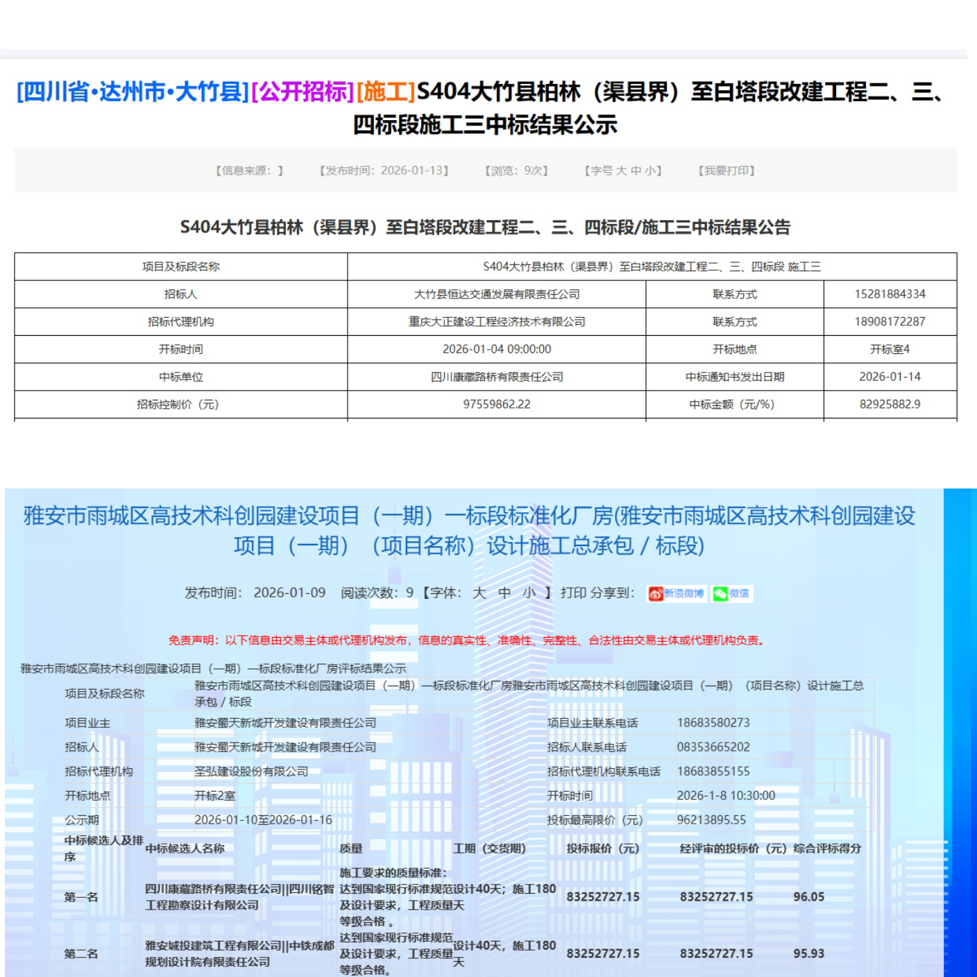 近日,四川康藏路橋有限責(zé)任公司在市場(chǎng)開(kāi)拓方面取得重要進(jìn)展,成功中標(biāo)S404大竹縣柏林(渠縣界)至白塔段改建工程二、三、四標(biāo)段施工項(xiàng)目,以及雅安市雨城區(qū)高技術(shù)科創(chuàng)園建設(shè)項(xiàng)目(一期),兩項(xiàng)目中標(biāo)金額合計(jì)超過(guò)1.66億元,實(shí)現(xiàn)新年經(jīng)營(yíng)工作“開(kāi)門紅”。