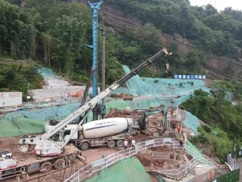 “咚咚咚……”在雨城區(qū)多營鎮(zhèn)五營村熊家山二號隧道出口端空地上,旋挖鉆機(jī)開足馬力,朝著地層深處掘進(jìn),不斷發(fā)出富有節(jié)奏的聲響!懊總樁基有二十多米深!眹318線名山區(qū)黑竹(成都界)至雨城區(qū)多營段改建工程項目副經(jīng)理林洲,每天都要到各施工點位查看進(jìn)度。他說,熊家山二號隧道附近山體為順層帶,易產(chǎn)生滑坡,進(jìn)洞施工前需要先在洞外打抗滑樁,以確保施工安全,目前還在開展剩下3根抗滑樁的施工。