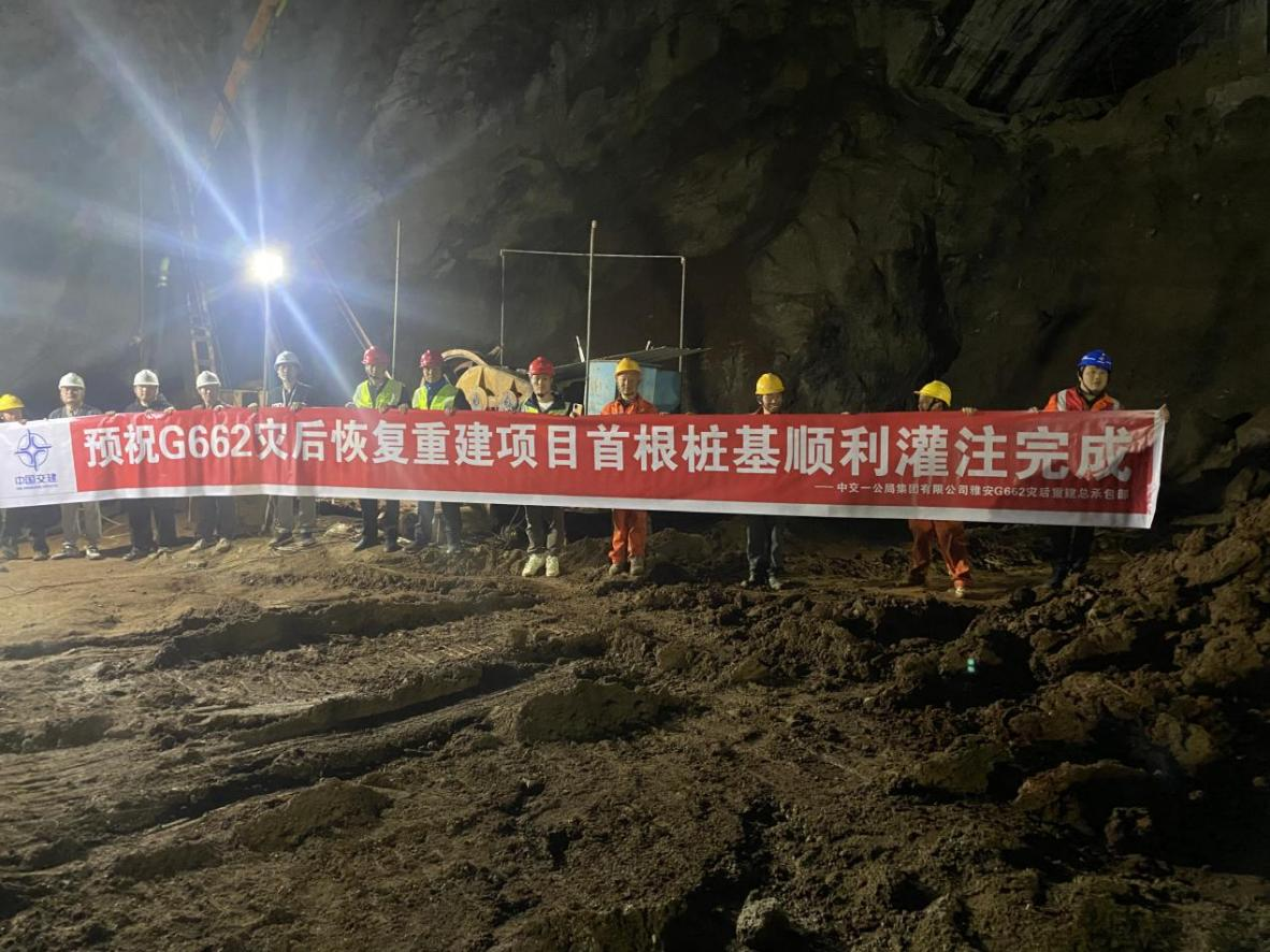 4月8日晚10時(shí),隨著最后一方混凝土注入樁基孔內(nèi),石棉G662災(zāi)后重建項(xiàng)目流水溝中橋首根樁基順利澆筑完成。流水溝中橋作為G662項(xiàng)目橋梁“十改八新”之一,全長86米,為跨越?jīng)_溝而建,地質(zhì)條件極其復(fù)雜,施工便道坡度陡,此次首根樁基順利澆筑吹響了G662項(xiàng)目大干快上的沖鋒號(hào)角,按下項(xiàng)目建設(shè)“加速鍵”。
