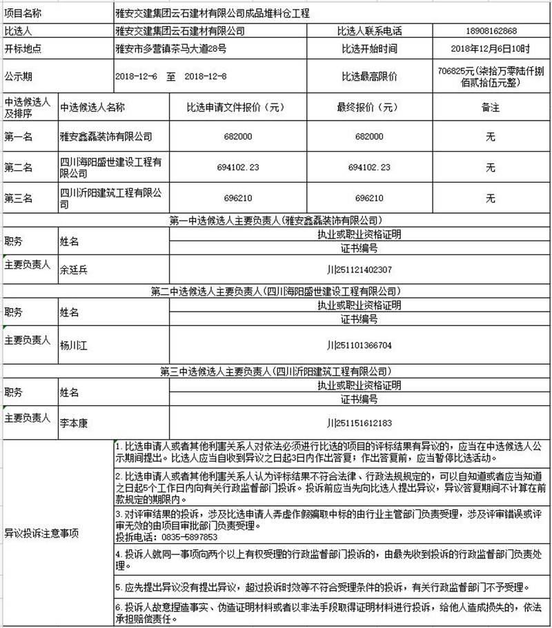 雅安交建集團(tuán)云石建材有限公司成品堆料倉(cāng)工程比選公示