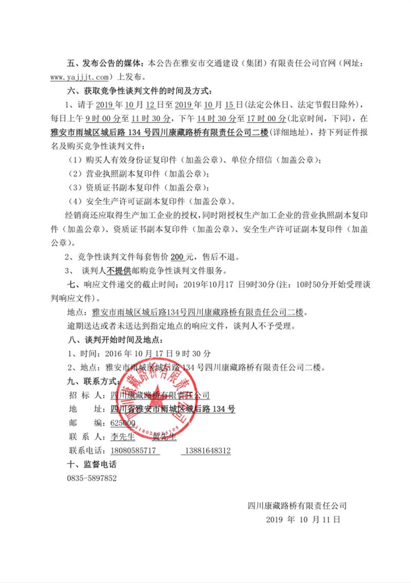 四川康藏路橋有限責任公司國道351線磽磧至夾金山段路面改造工程防護網(wǎng)采購競爭性談判公告