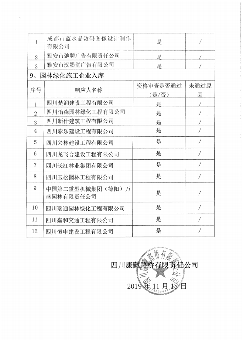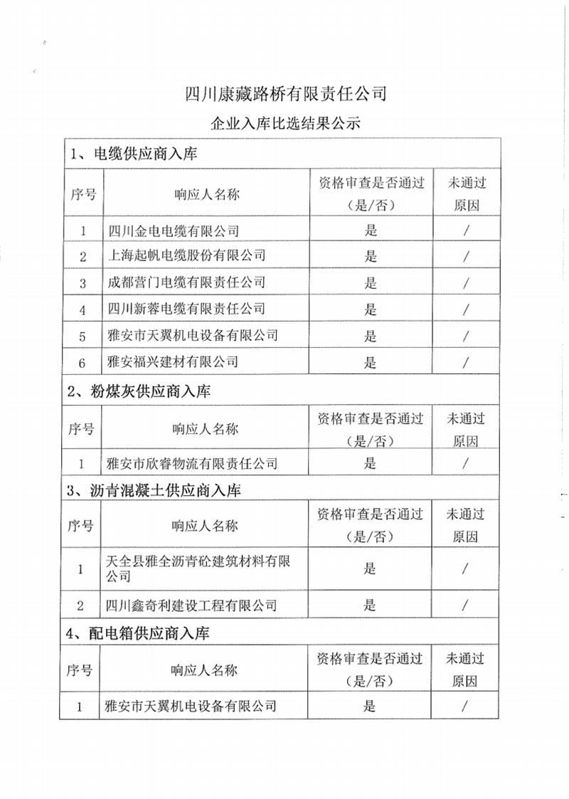 四川康藏路橋有限責(zé)任公司企業(yè)入庫比選結(jié)果公示