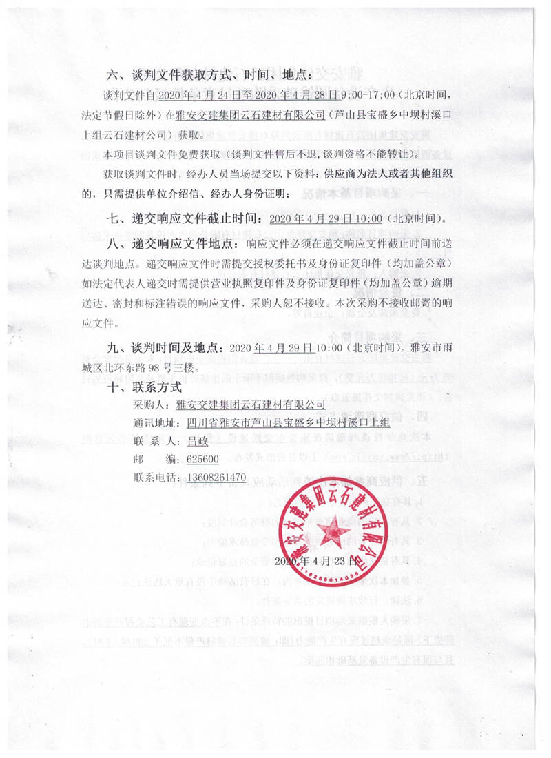 雅安交建集團云石建材有限公司生產(chǎn)設備圓錐破采購項目競爭性談判公告
