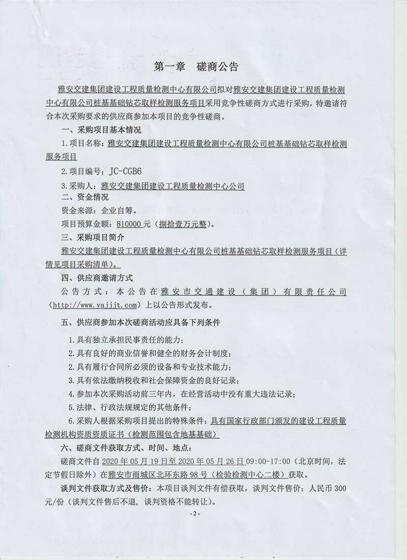 雅安交建集團(tuán)建設(shè)工程質(zhì)量檢測(cè)中心有限公司樁基基礎(chǔ)鉆芯取樣檢測(cè)服務(wù)項(xiàng)目競(jìng)爭(zhēng)性磋商公告
