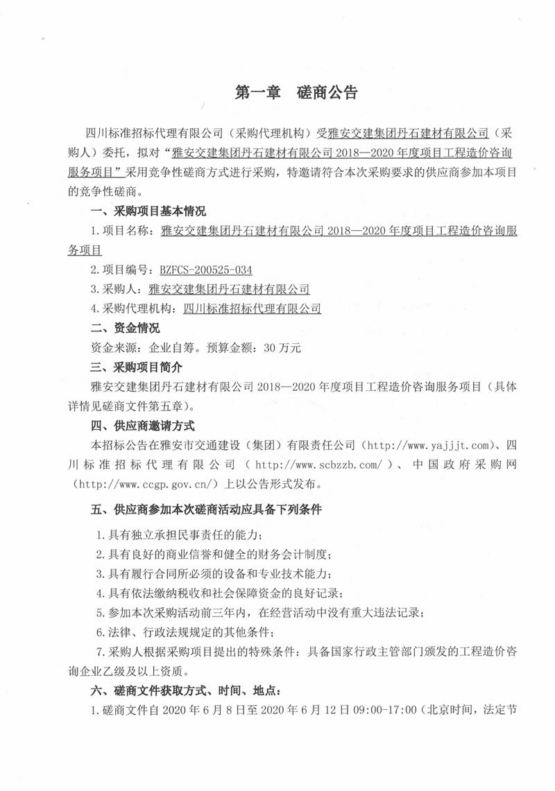 雅安交建集團(tuán)丹石建材有限公司2018—2020年度項(xiàng)目工程造價(jià)咨詢(xún)服務(wù)項(xiàng)目競(jìng)爭(zhēng)性磋商公告