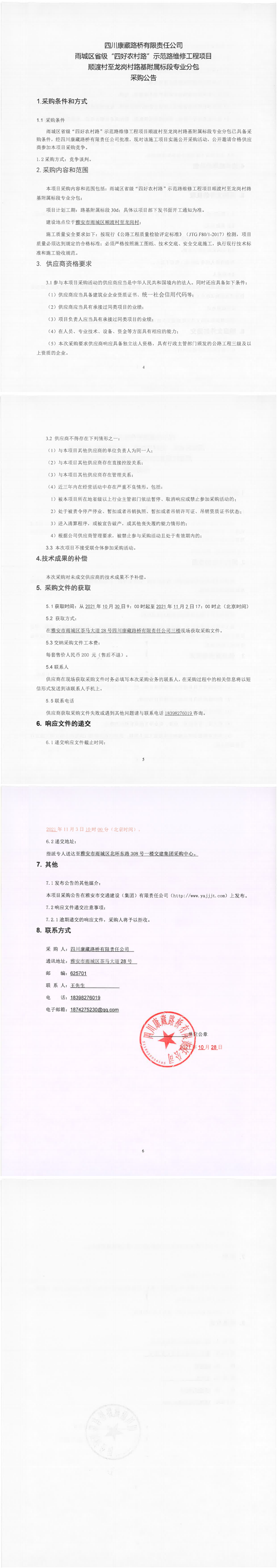 四川康藏路橋有限責(zé)任公司雨城區(qū)省級“四好農(nóng)村路”示范路維修工程項(xiàng)目順渡村至龍崗村路基附屬標(biāo)段專業(yè)分包采購公告