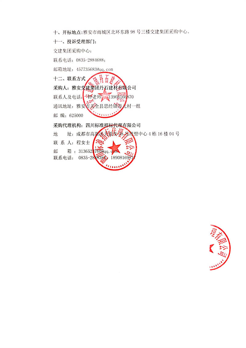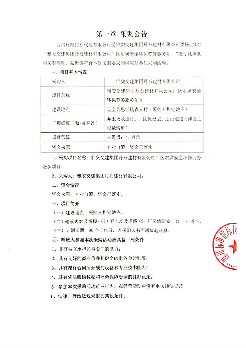 雅安交建集團(tuán)丹石建材有限公司廠區(qū)附屬安全環(huán)保勞務(wù)服務(wù)項目競爭談判公告