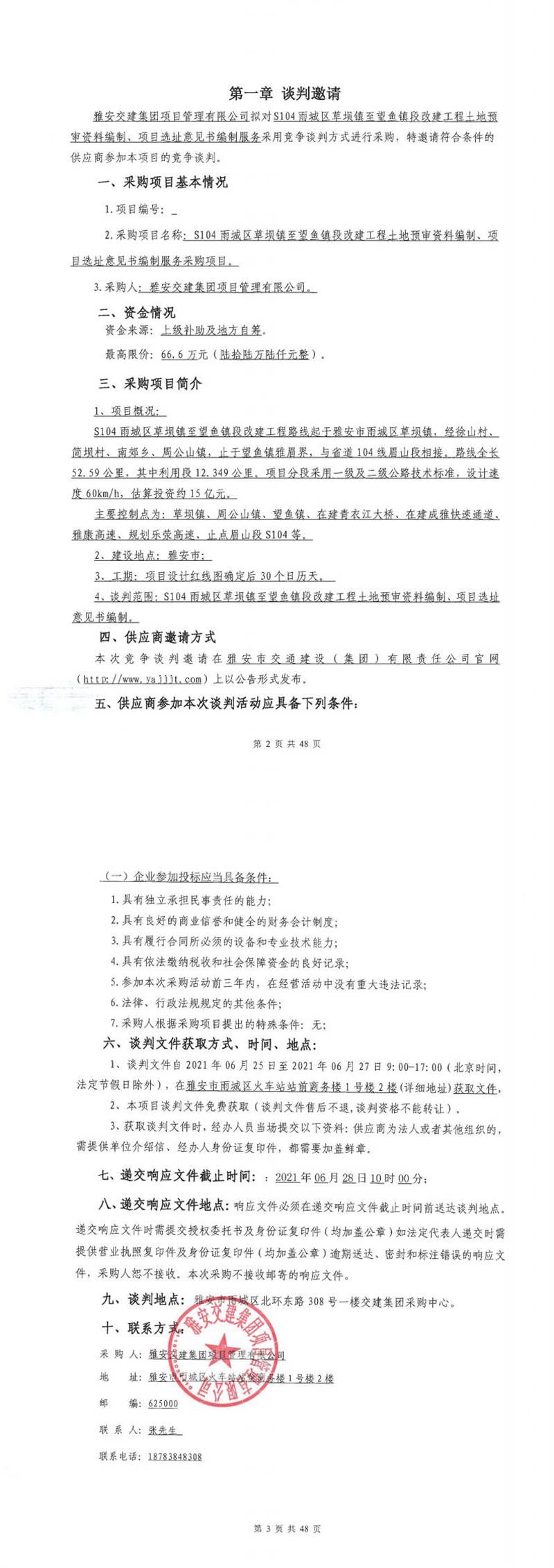 雅安交建集團(tuán)項(xiàng)目管理有限公司S104雨城區(qū)草壩鎮(zhèn)至望魚(yú)鎮(zhèn)段改建工程土地預(yù)審資料編制、項(xiàng)目選址意見(jiàn)書(shū)編制服務(wù)采購(gòu)項(xiàng)目