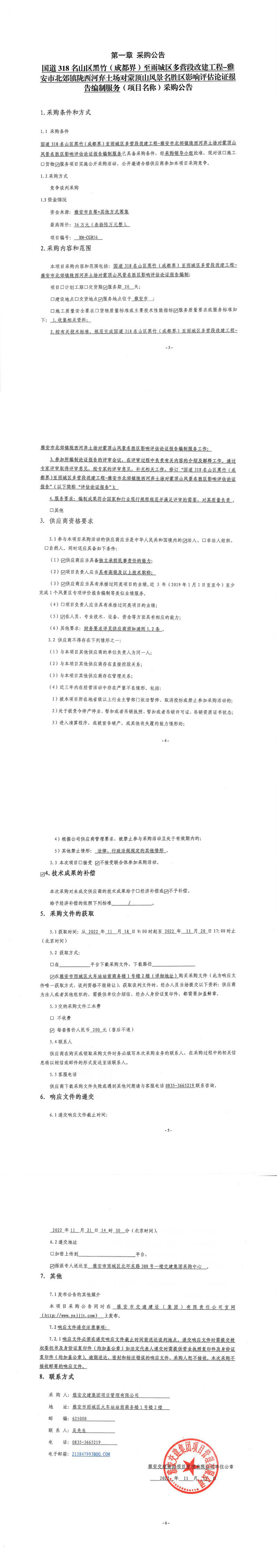 雅安交建集團(tuán)項(xiàng)目管理有限公司國(guó)道318名山區(qū)黑竹(成都界)至雨城區(qū)多營(yíng)段改建工程-雅安市北郊鎮(zhèn)隴西河棄土場(chǎng)對(duì)蒙頂山風(fēng)景名勝區(qū)影響評(píng)估論證報(bào)告編制服務(wù)采購(gòu)公告