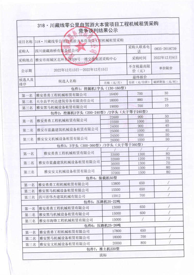 四川康藏路橋有限責(zé)任公司318.川藏線零公里自駕游大本營項(xiàng)目工程機(jī)械租賃采購競爭談判結(jié)果公示