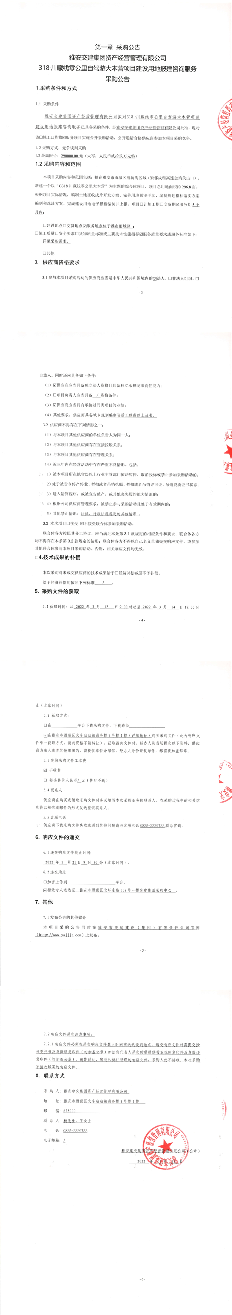 雅安交建集團(tuán)資產(chǎn)經(jīng)營(yíng)管理有限公司318.川藏線(xiàn)零公里自駕游大本營(yíng)項(xiàng)目建設(shè)用地報(bào)建咨詢(xún)服務(wù)采購(gòu)公告