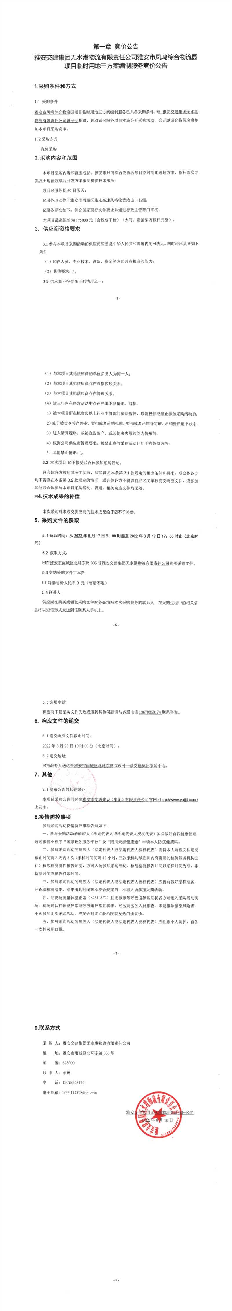 雅安交建集團無水港物流有限責(zé)任公司雅安市鳳鳴綜合物流園項目臨時用地三方案編制服務(wù)競價公告
