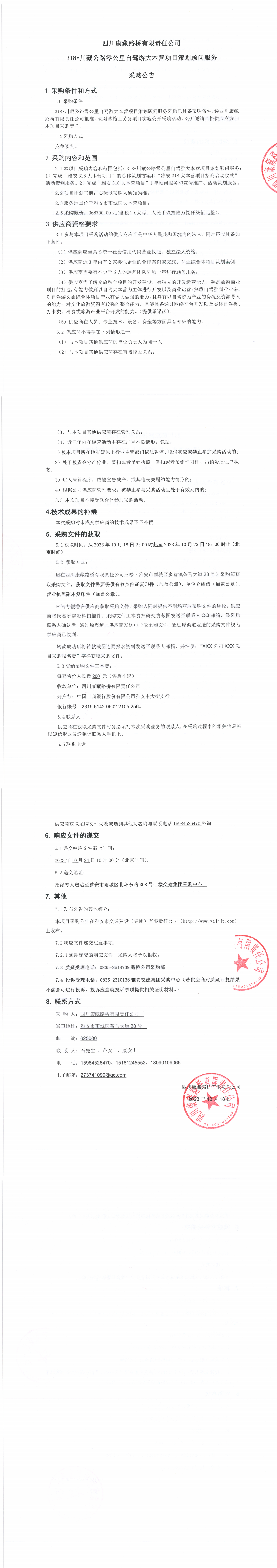 四川康藏路橋有限責(zé)任公司318•川藏公路零公里自駕游大本營項(xiàng)目策劃顧問服務(wù)采購公告
