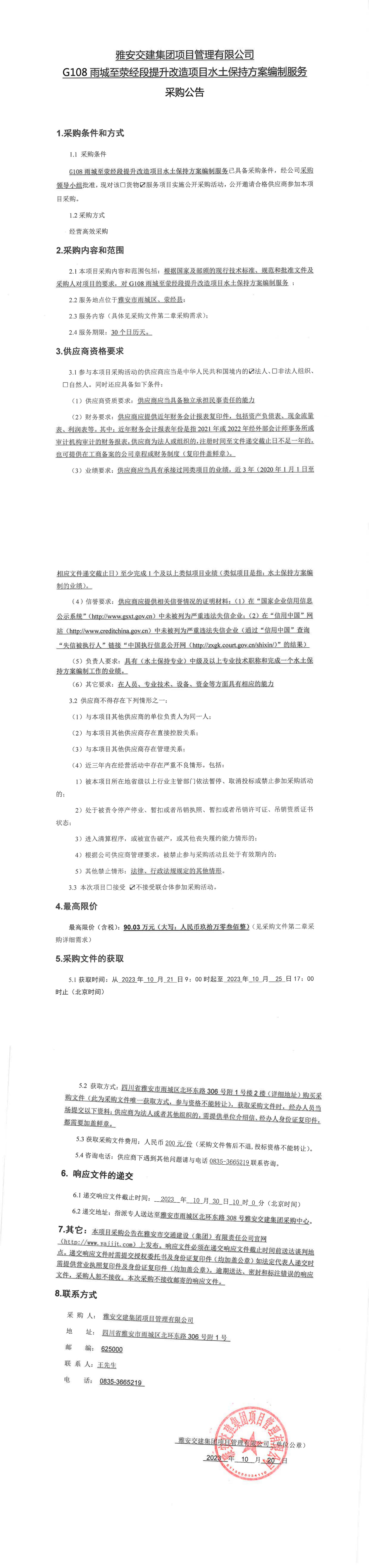 雅安交建集團(tuán)項(xiàng)目管理有限公司G108雨城至滎經(jīng)段提升改造項(xiàng)目水土保持方案編制服務(wù)采購公告