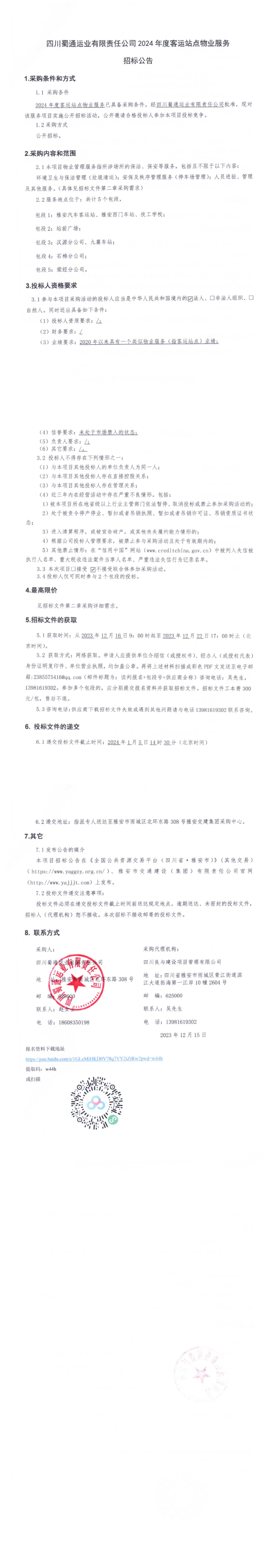 四川蜀通運業(yè)有限責任公司2024年度客運站點物業(yè)服務(wù)招標公告