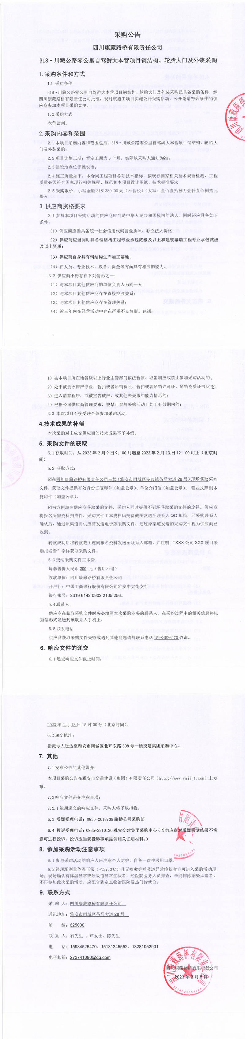 四川康藏路橋有限責(zé)任公司318.川藏公路零公里自駕游大本營(yíng)項(xiàng)目鋼結(jié)構(gòu)、輪胎大門及外裝采購(gòu)采購(gòu)公告