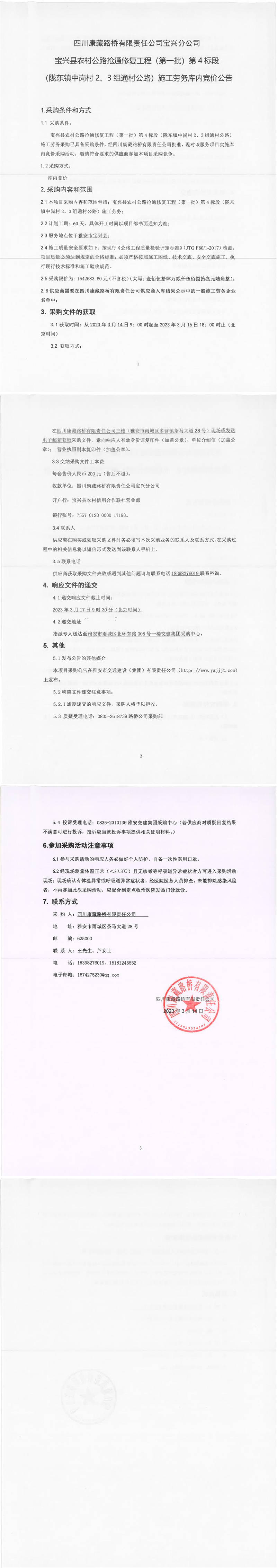四川康藏路橋有限責任公司寶興分公司寶興縣農村公路搶通修復工程(第一批)第4標段(隴東鎮(zhèn)中崗村2、3組通村公路)施工勞務庫內競價公告