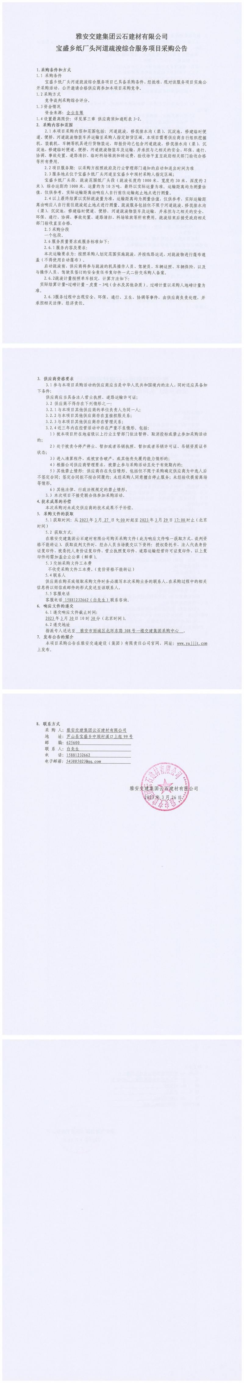 雅安交建集團云石建材有限公司寶盛鄉(xiāng)紙廠頭河道疏浚綜合服務(wù)項目采購公告