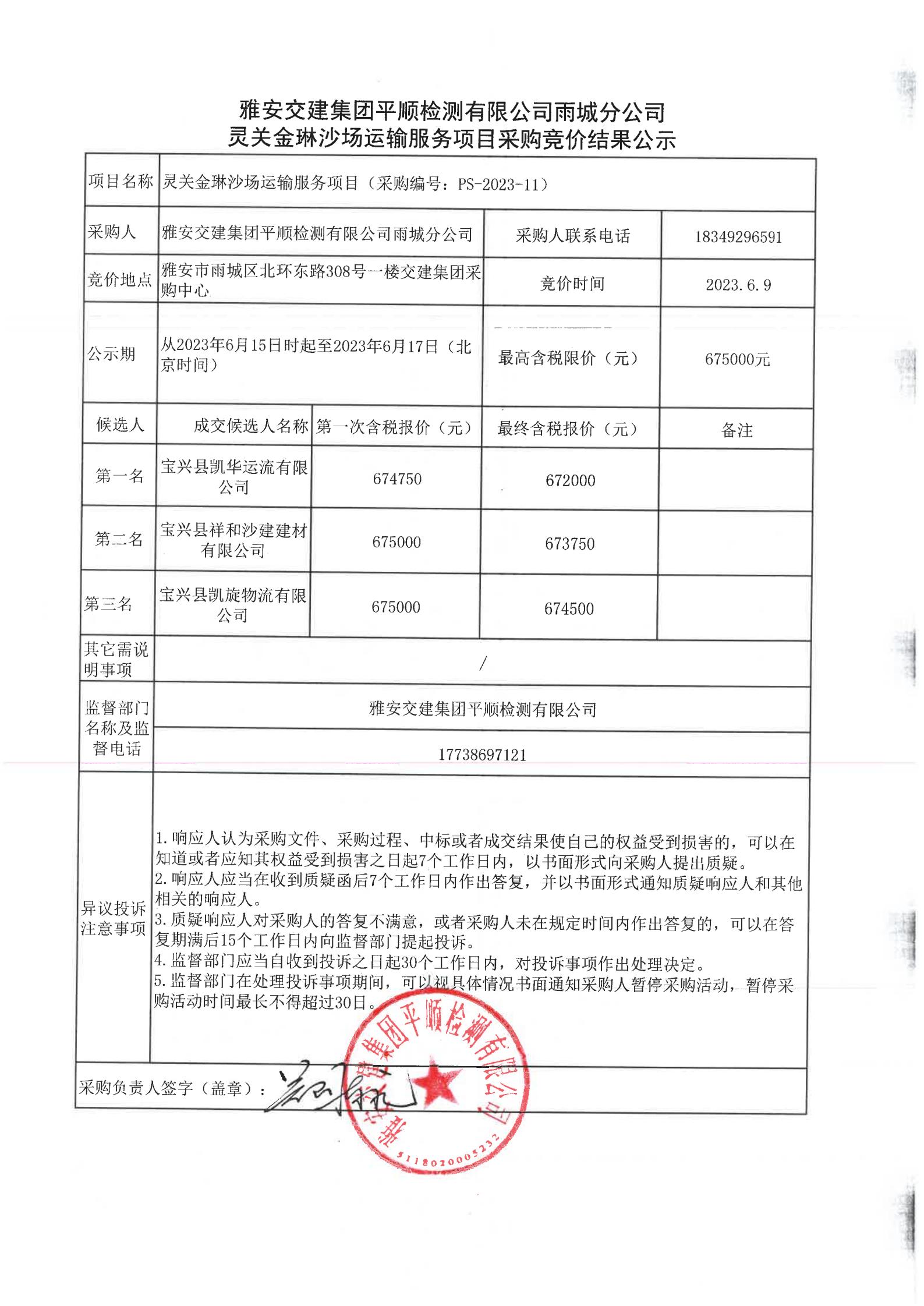 雅安交建集團(tuán)平順檢測有限公司雨城分公司靈關(guān)金琳沙場運(yùn)輸服務(wù)競價結(jié)果公示