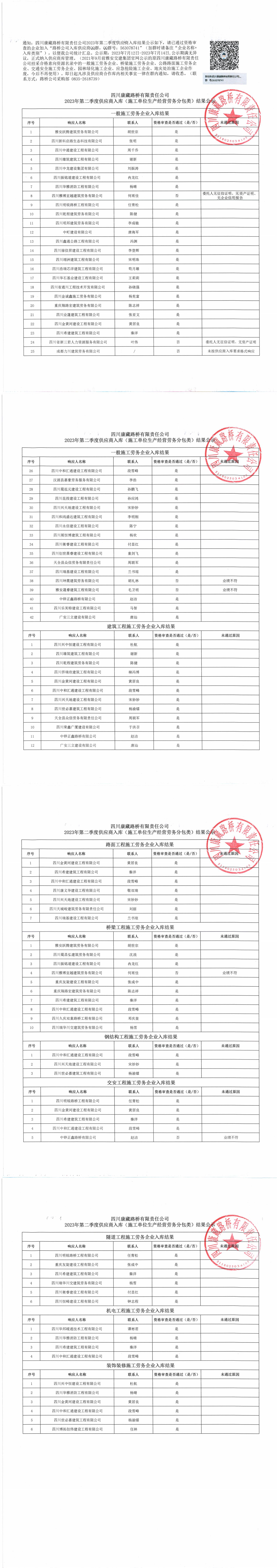 四川康藏路橋有限責任公司2023年第二季度供應商入庫(施工單位生產經(jīng)營勞務分包類)結果公示