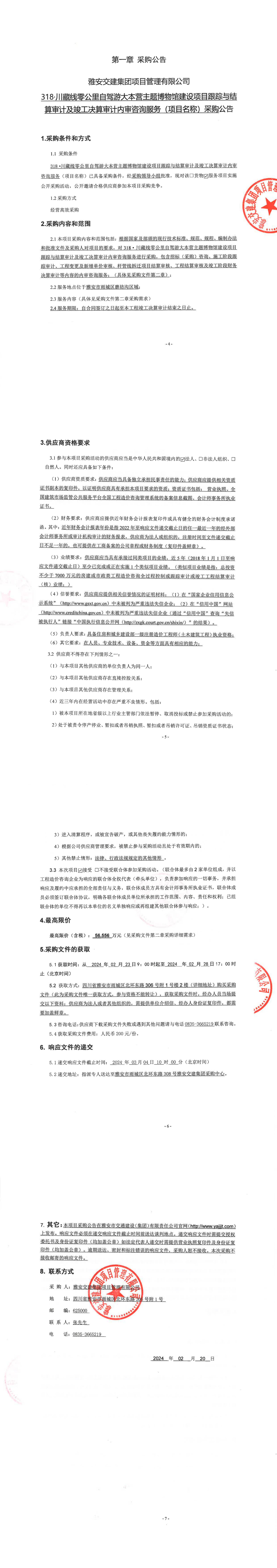雅安交建集團項目管理有限公司318·川藏線零公里自駕游大本營主題博物館建設(shè)項目跟蹤與結(jié)算審計及竣工決算審計內(nèi)審咨詢服務(wù)采購公告
