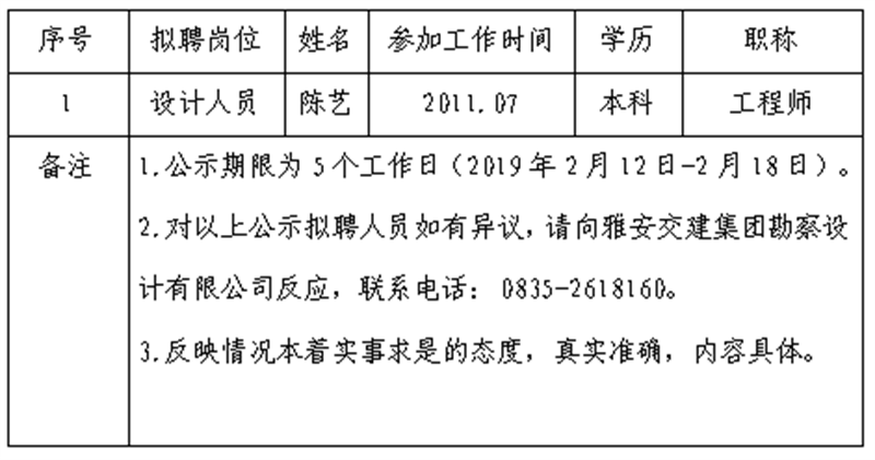 雅安交建集團勘察設(shè)計有限公司擬聘用人員公示