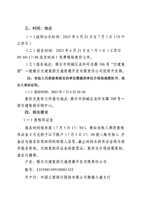 雅安交建集團交通資源開發(fā)有限責任公司雨名快速通道(名山服務區(qū))4、5號樓招租公告附件