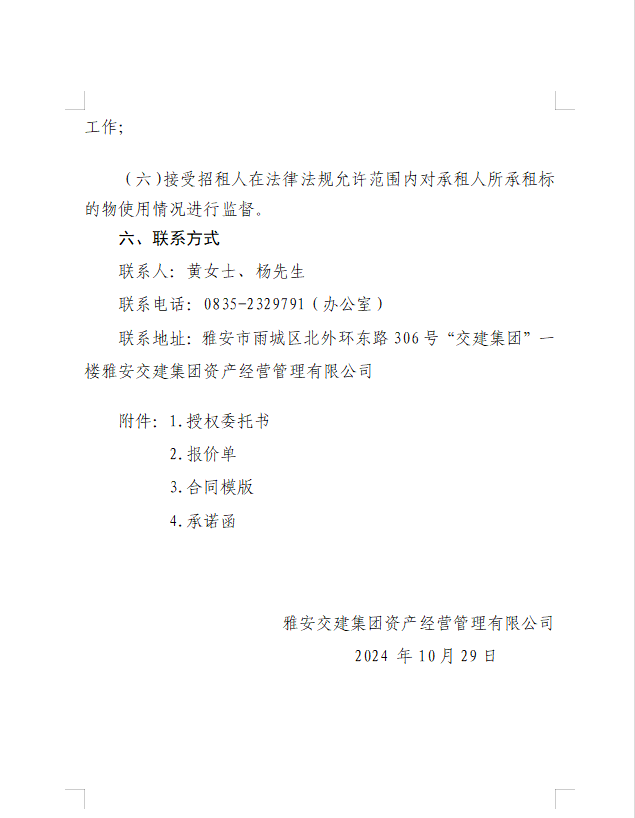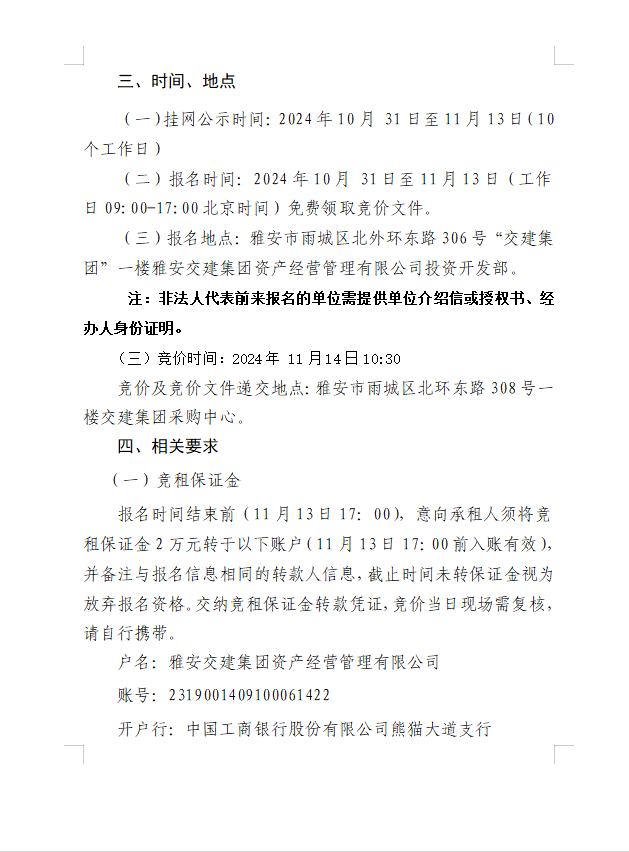 雅安交建集團(tuán)資產(chǎn)經(jīng)營管理有限公司雨名快速通道(名山服務(wù)區(qū))1號樓配套用房招租公告