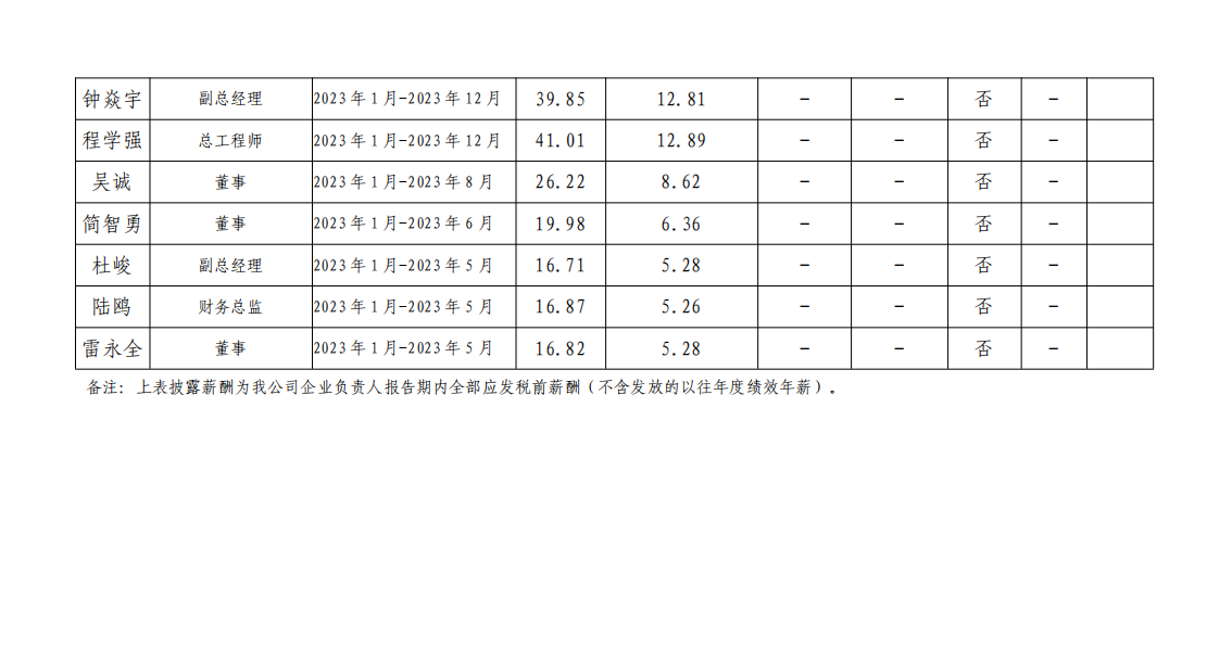 ÑŰ²Êн»Í¨½¨ÔO£¨¼¯ˆF£©ÓÐÏÞØŸÈι«Ë¾ Æó˜I(y¨¨)ؓ؟ÈË2023Äê¶Èн³êÇé›r¹«Ê¾±í