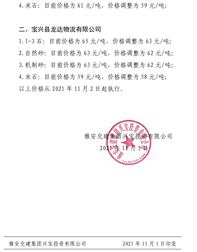 ÑŰ²½»½¨¼¯ˆFÅdŒš¹«Ë¾êP(gu¨¡n)ÓÚÕ{(di¨¤o)Õû³ÉÆ·ÁÏäNÊÛƒr¸ñµÄ֪ͨ£¨2021.11.2£©