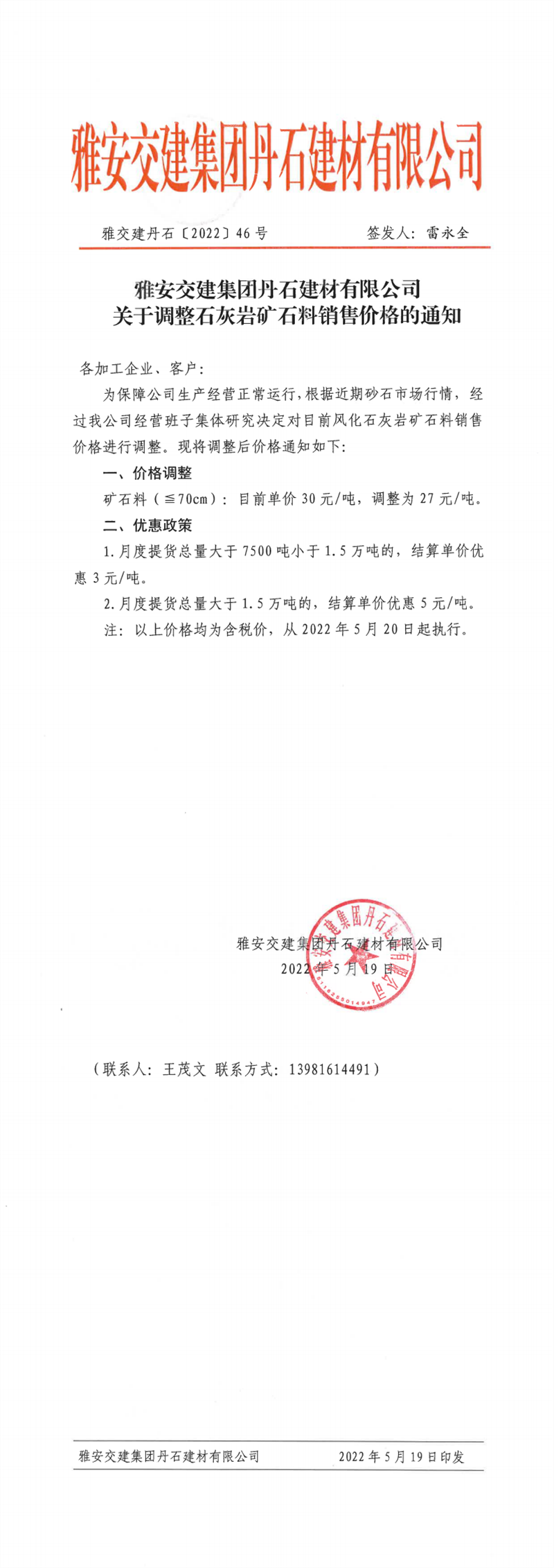 ÑŰ²½»½¨¼¯ˆFµ¤Ê¯¹«Ë¾êPÓÚÕ{(di¨¤o)Õûʯ»Ò?gu¨©)rµVʯÁσr¸ñµÄ֪ͨ-2022-5-19